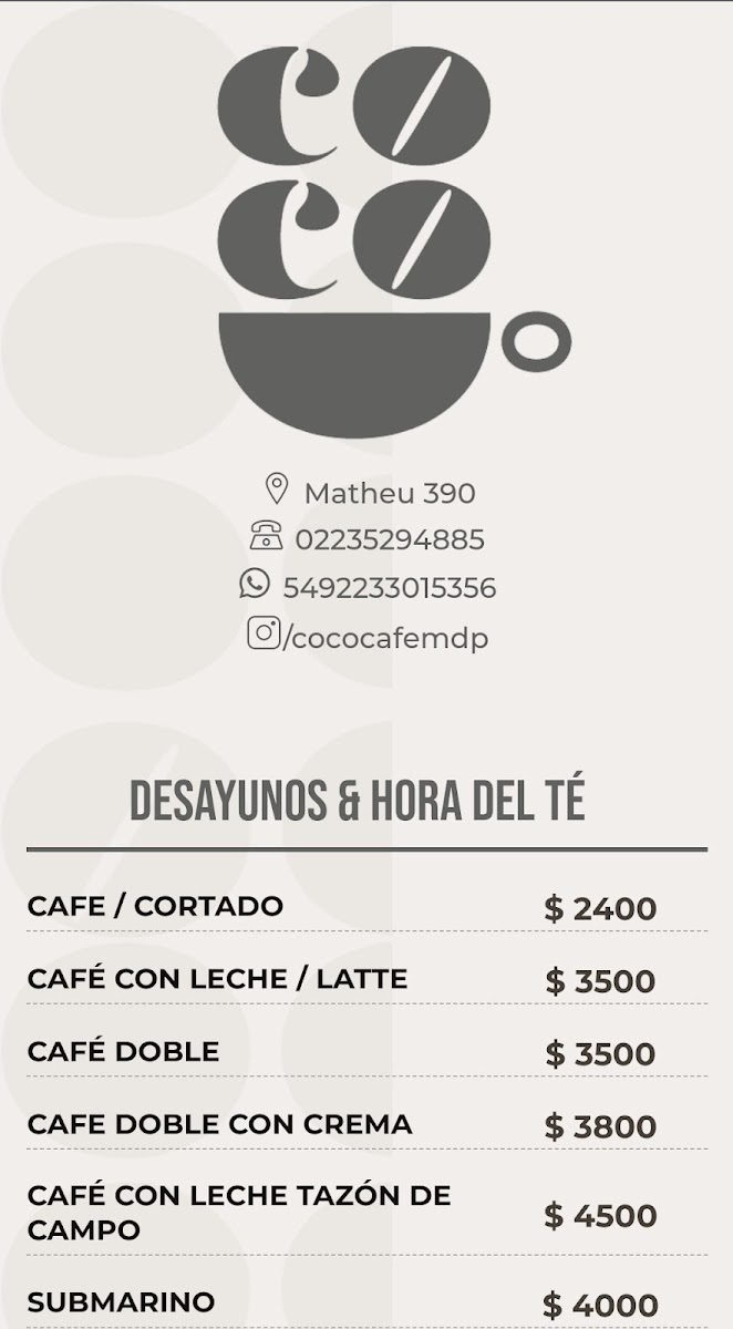 The menu at Coco Cafe Mdp truly captures the essence of casual, comforting dining with a local flair, making it a must-visit destination in Mar del Plata.